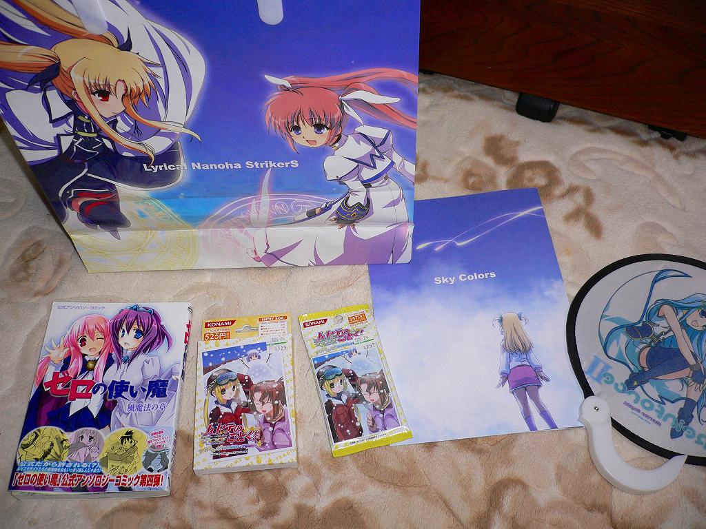 袋と、SKY COLORS、リインフォースⅡうちわはコミケで買ったものです。袋の中にこの三セットが入っているモノでした。